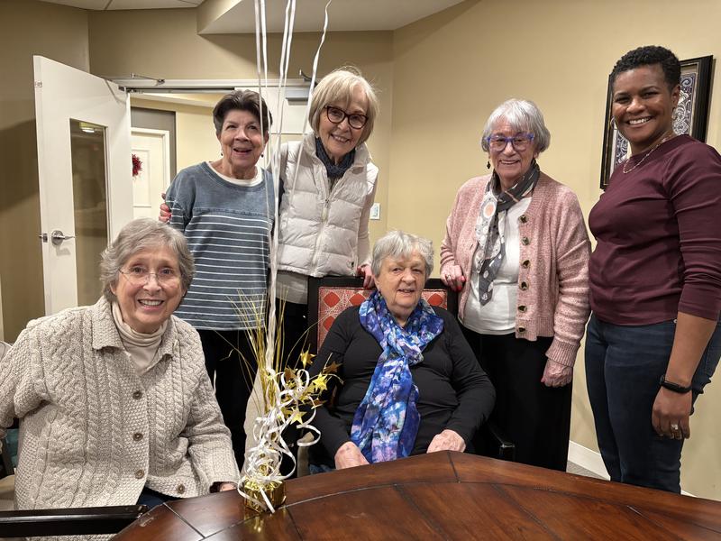 Who would have thought was back at our 50th reunion that Alexis Lewis, far right, would have organized a birthday party for Mollie Hibbard along with other members of their church?